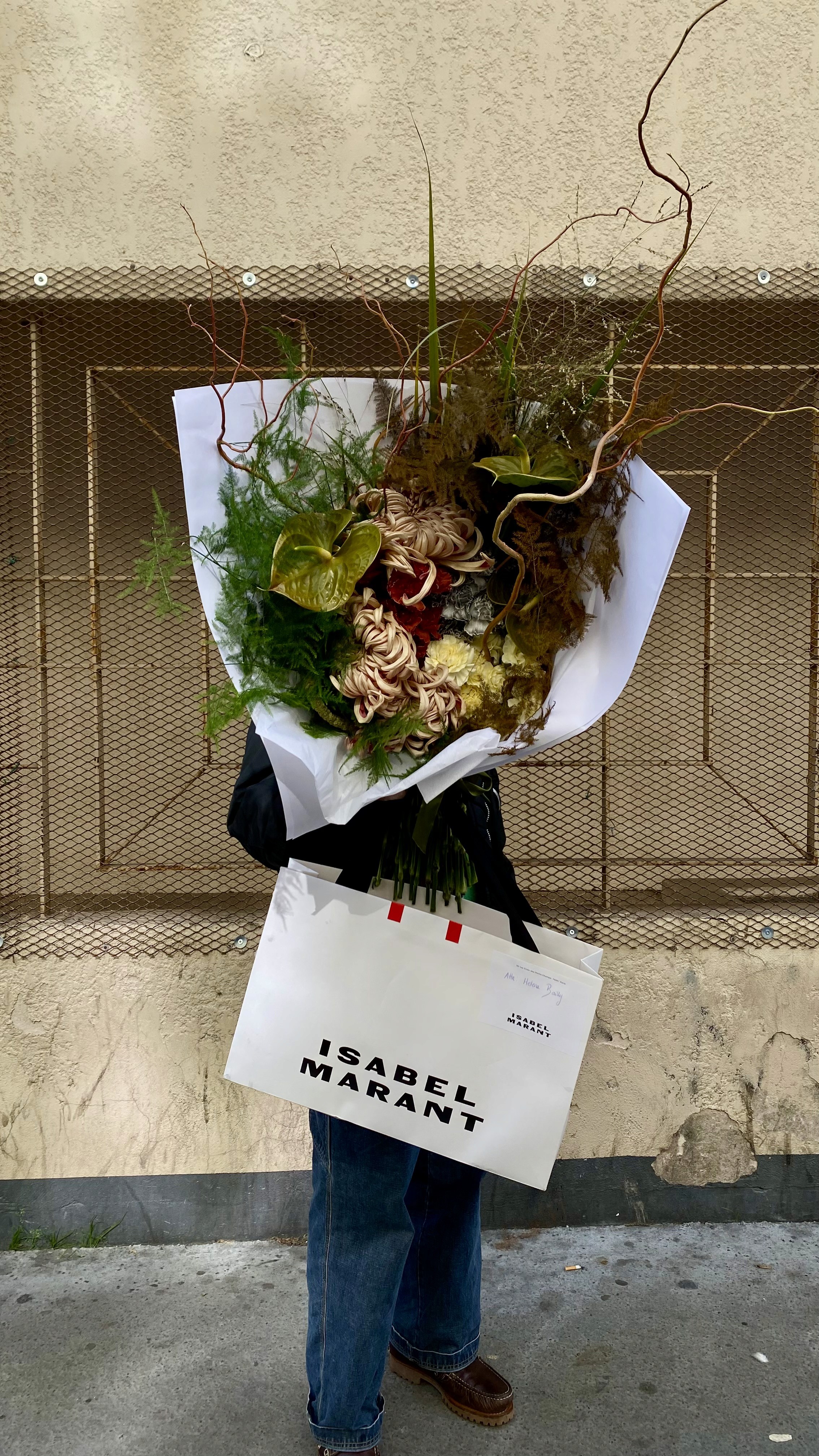 À l’occasion de la Fashion Week de septembre 2025, Studio Josie réalise les bouquets offerts aux invités à la fin du défilé Isabel Marant, dans le respect de l’esthétique de la maison : gestes spontanés, textures naturelles, palette lumineuse. La scénographie florale du showroom Isabel Marant est également confiée au Studio.